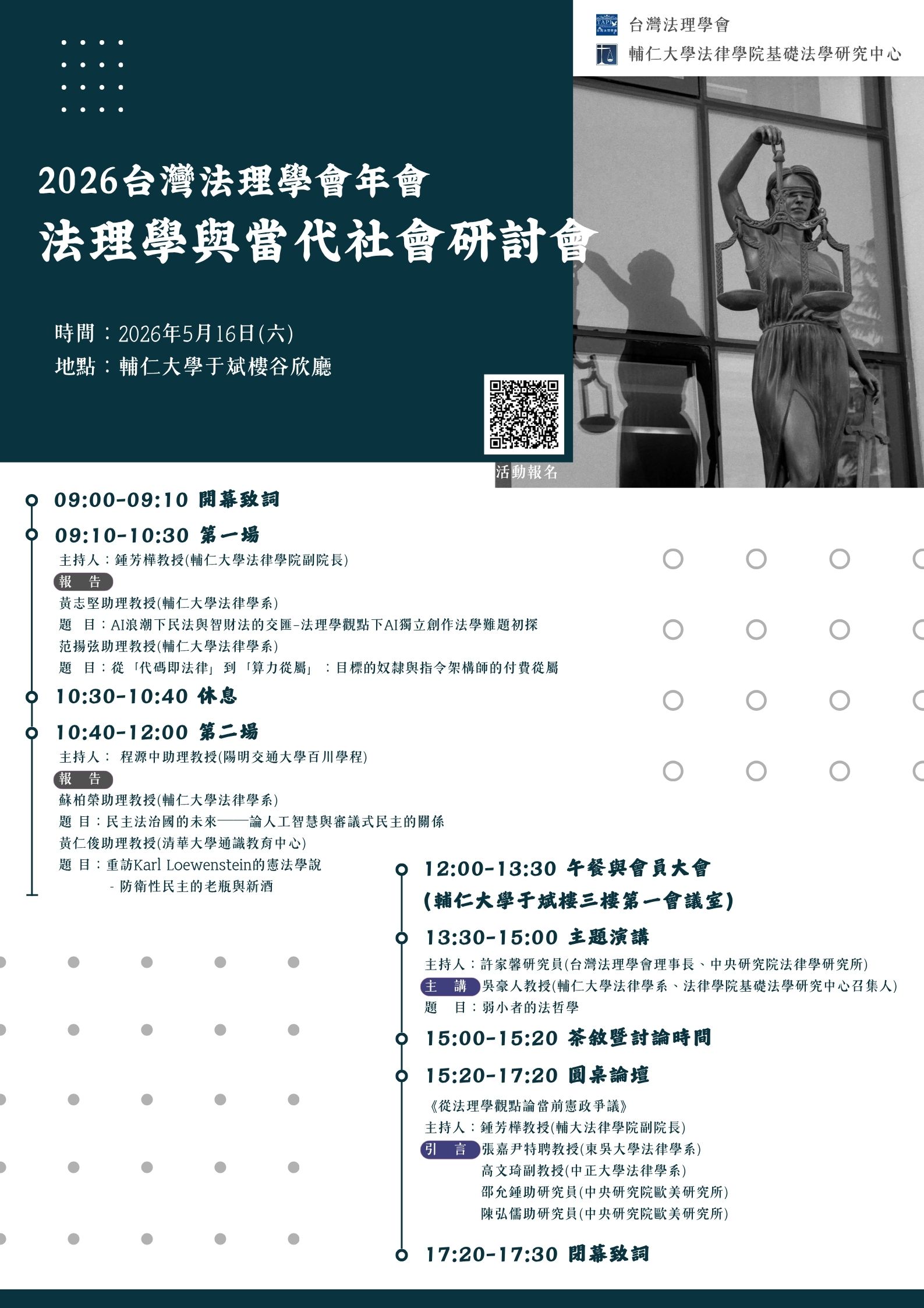 2026台灣法理學會年會-「法理學與當代社會研討會」