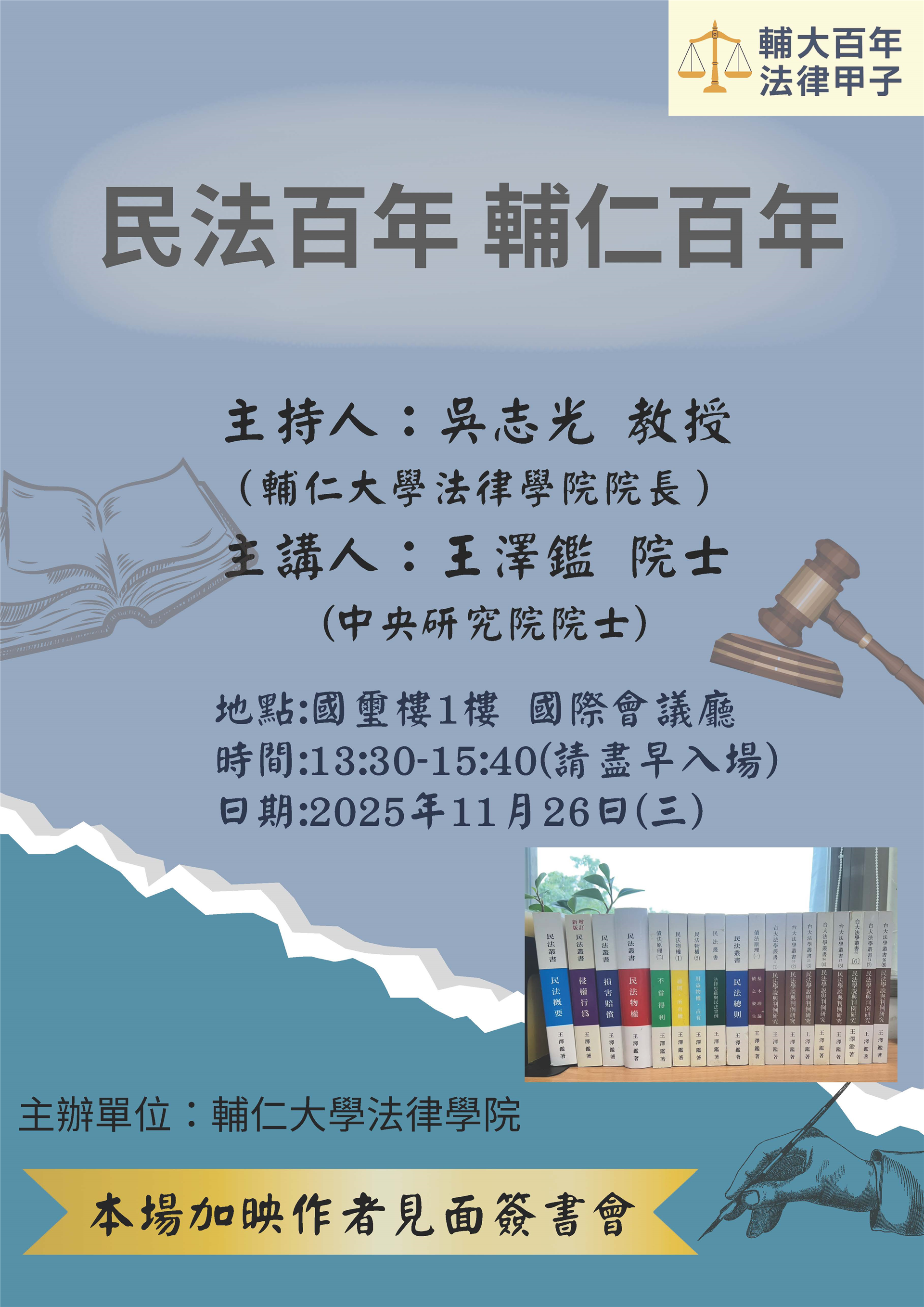 王澤鑑院士專題演講—「民法百年 輔仁百年」